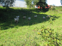 Så syklet vi en tur til bensinstasjonen, i håp om at de solgte gjær. Jeg skulle bake i dag, men hadde visst ikke gjær, men på denne lille lokale bensinstasjonen var det litt for mye å be om, så vi syklet videre ned til May- Lovise, min kusine, og der var det full jubel og stormende glede, for Silje hadde bursdag, og var på besøk. Så vi fikk hilse på både Frida, Trym, Miriam, Silje, Rose Marie, Jørn, Thomas, Nils og May- Lovise, og selvfølgelig fiskene og den skjønne lille valpen Maya og Nils har skaffet seg.